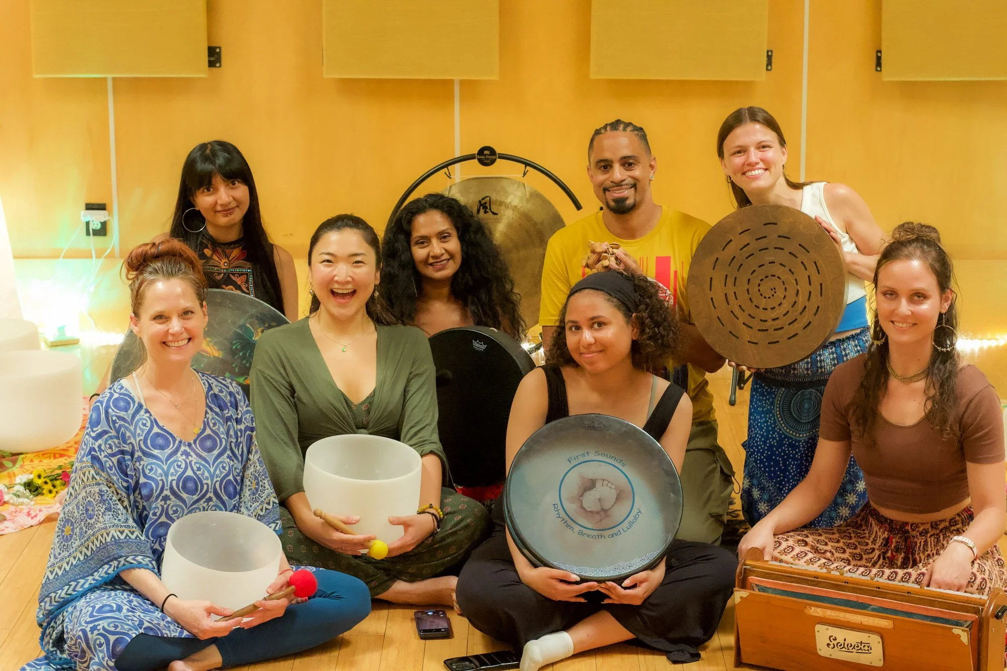 ✓ 9 in-person group sessions combining lectures, discussions, hands-on practice, plus a final group soundbath ceremony